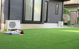 お庭へ人工芝を設置すればお子さんもワンちゃんも大喜びです。